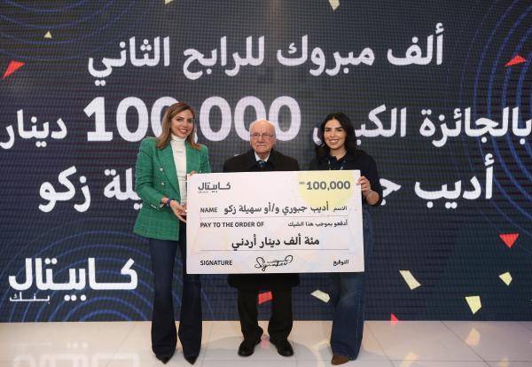 100 ألف دينار للرابح الثاني بجائزة حساب توفير "طريقك دهب" الكبرى من كابيتال بنك