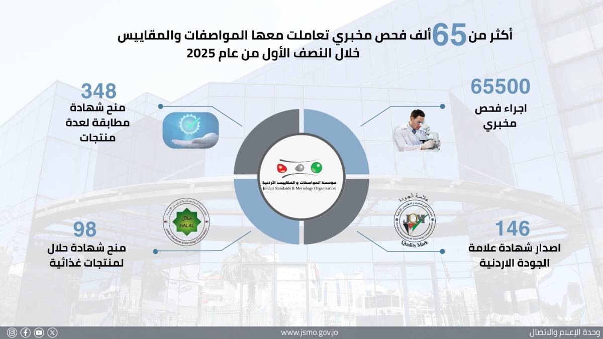 "المواصفات والمقاييس" تجري أكثر من 65 ألف فحص في النصف الأول