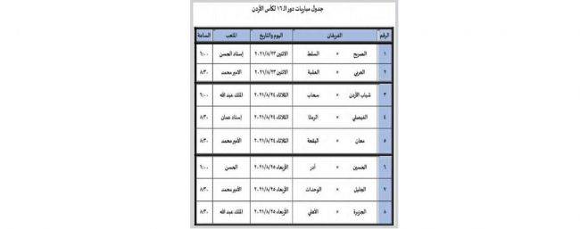 إصدار جدول مباريات دور الـ 16 لبطولة كأس الأردن بكرة القدم