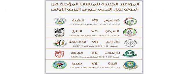 تأجيل المباريات المتبقية من الجولة قبل الأخيرة لكرة الأولى