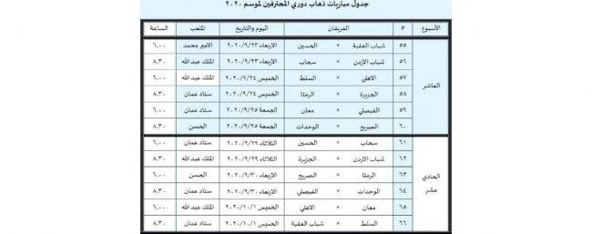 اصدار جدول مرحلة الذهاب من دوري المحترفين 2020